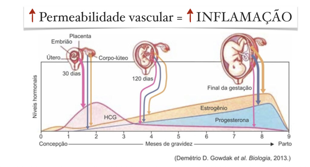 Esses hormônios são responsáveis pela manutenção da gestação, e um dos seus efeitos é a vasodilatação, que é o aumento na espessura dos vasos sanguíneos e tem como função aumentar o fluxo sanguíneo e permitir a chegada de nutrientes na placenta. Porém existem receptores desses hormônios na gengiva, então esse efeito vasodilatador também vai acontecer na gengiva.